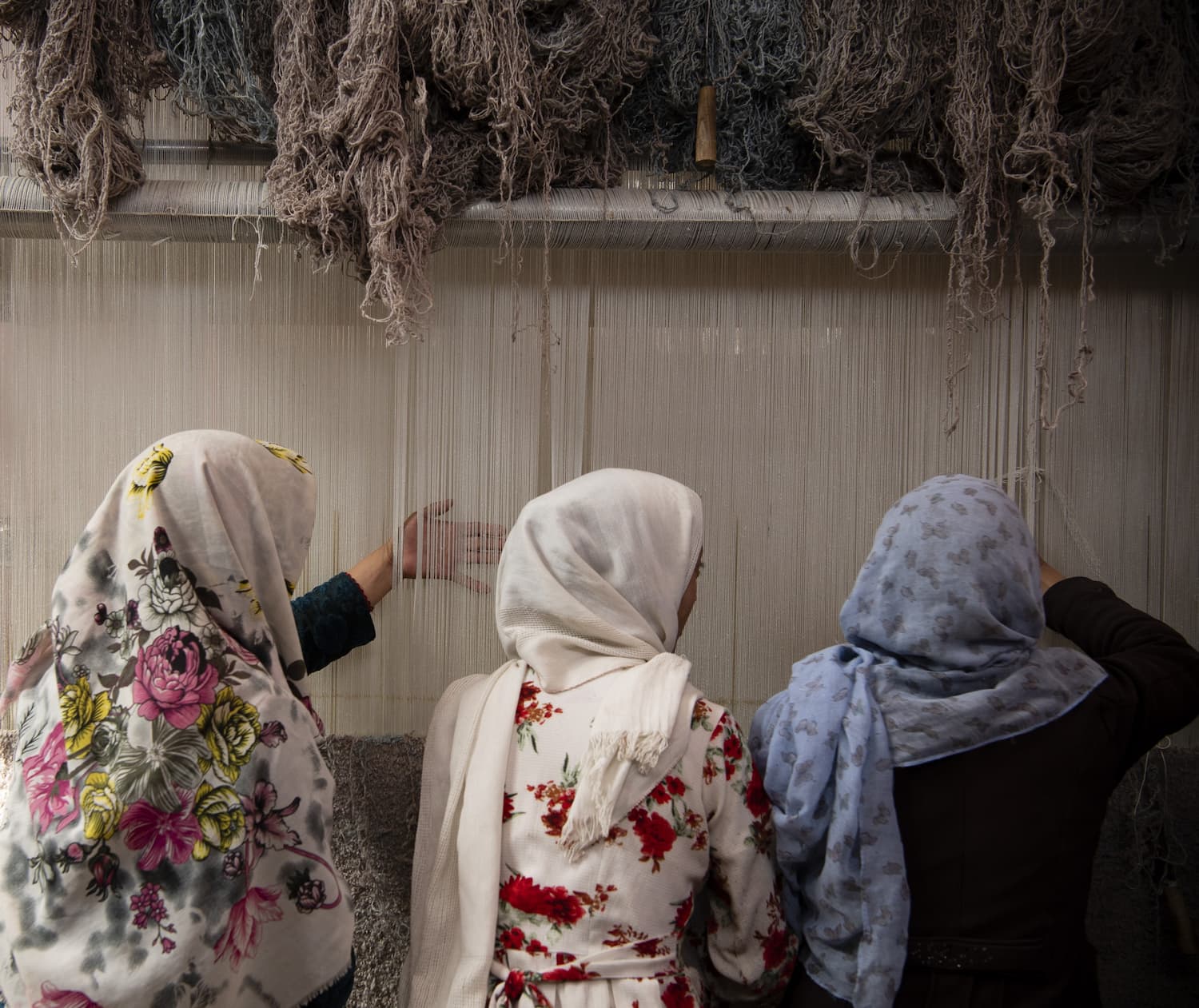 Derefter beder væverne en fællesbøn for, at tæppeprojektet bliver vellykket.
