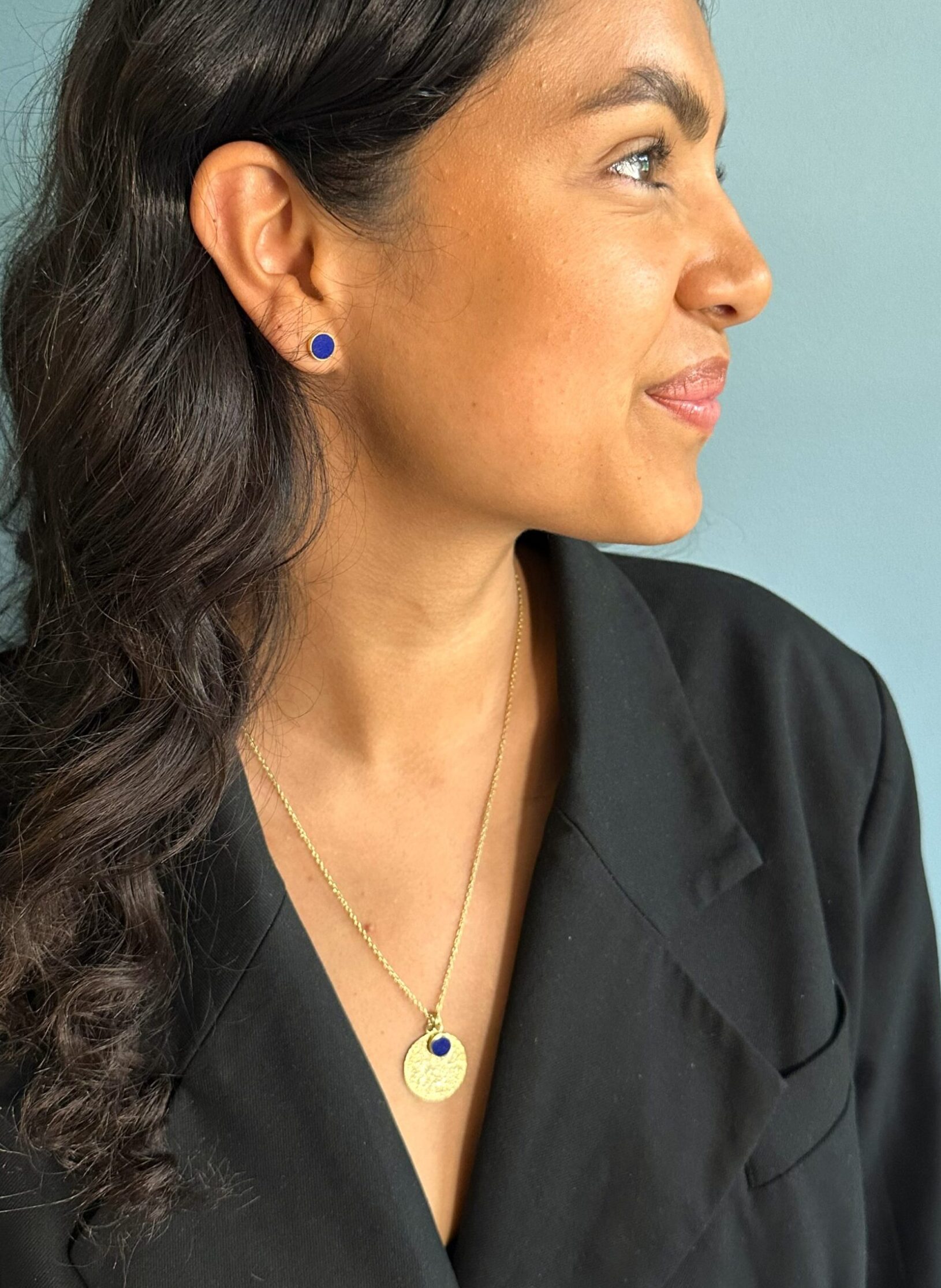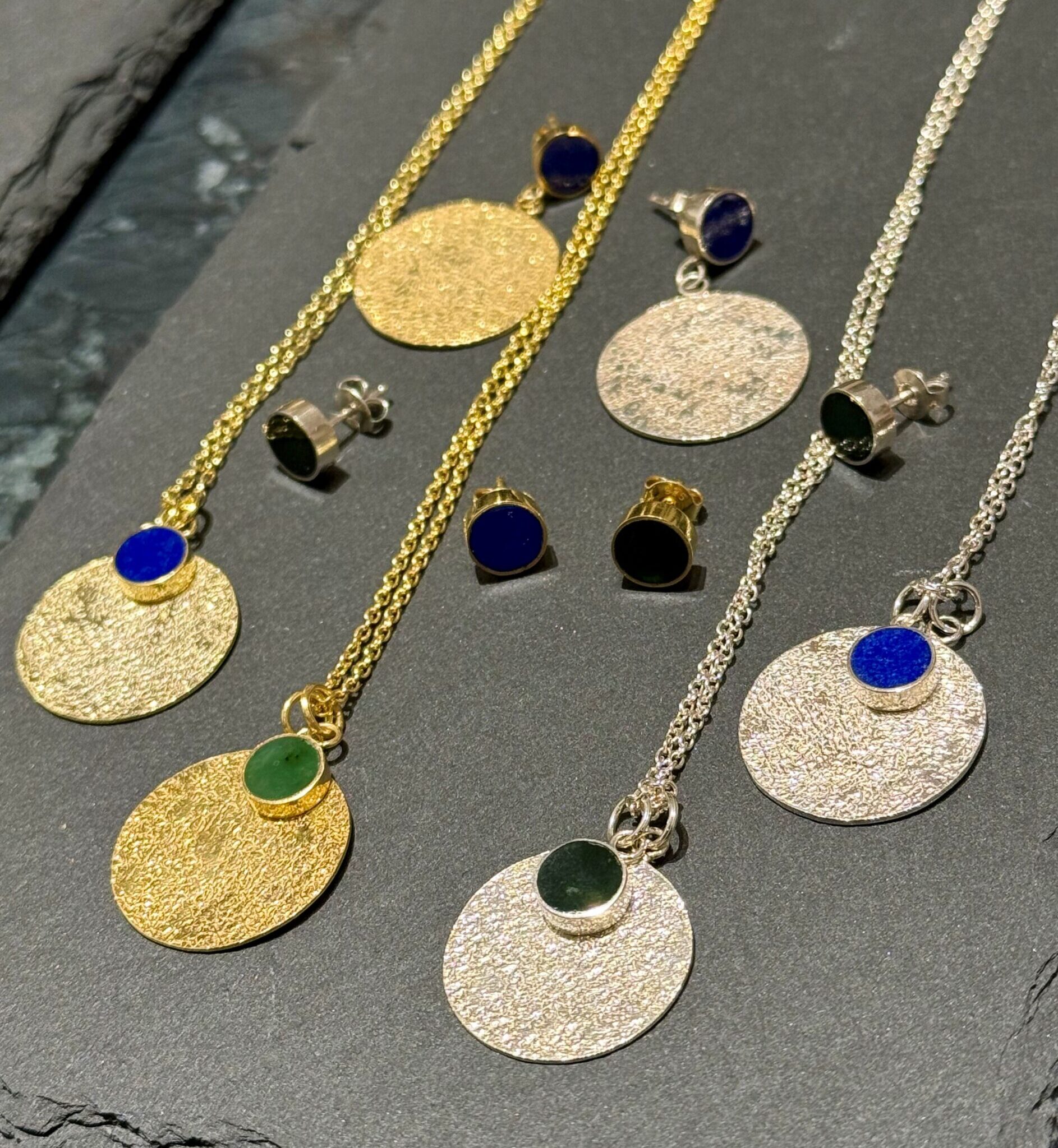 Arzum kollektion består af to slags øreringe og halskæder med enten den blå lapis-lazuli sten eller den grønne nefrit jade-sten. Mix & Match som du ønsker.