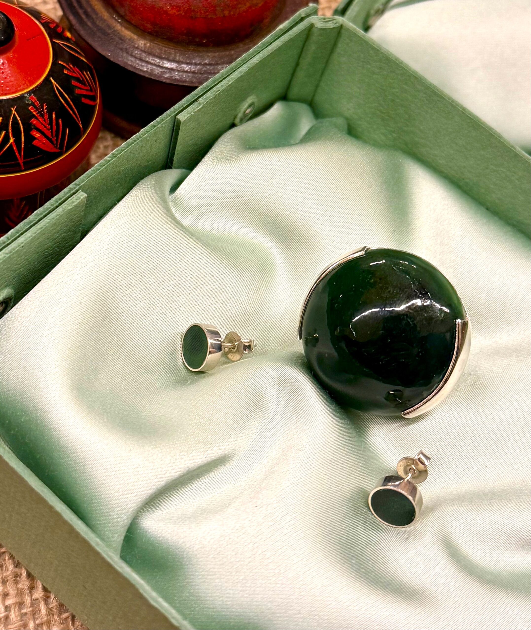 Arzum ørestik med grøn jade – sølv