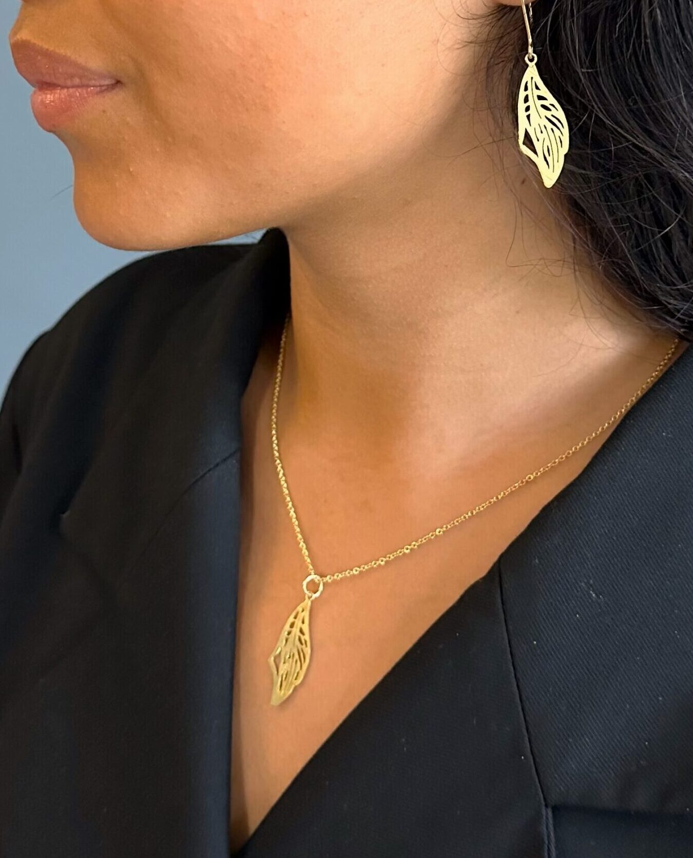 Jeg tegnede bladet på et lille papir hos Khala i Kabul i 2021. Hun kreerede smykket. Og siden har jeg elsket at bære det. Det er mit Azizam, min kære.