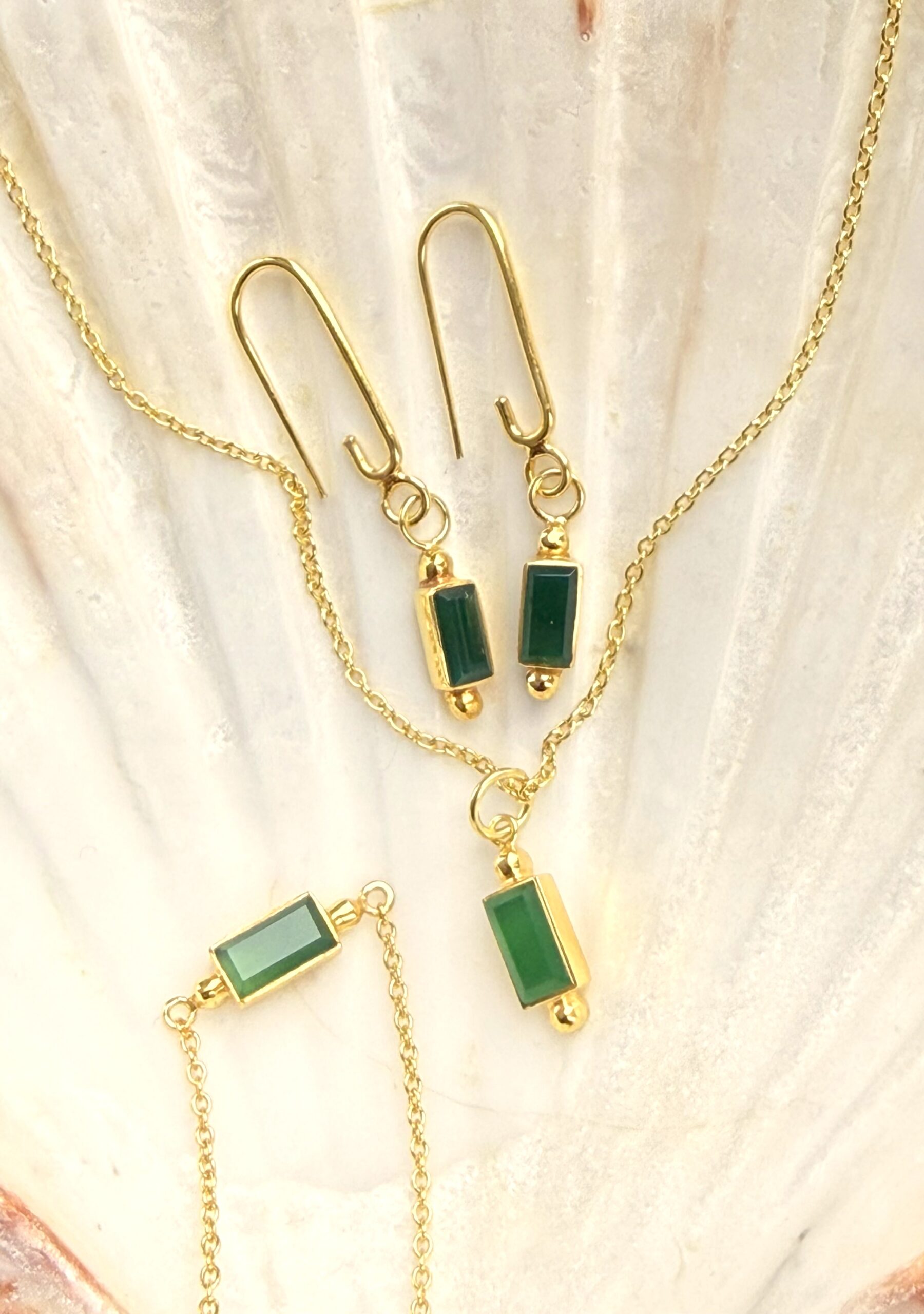 Grøn agat halskæde – guldbelagt sølv