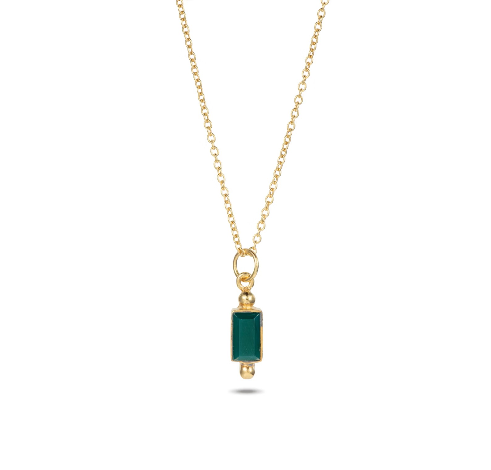 Stilren halskæde med et fint grønt agat vedhæng. Kæden er i guldbelagt sølv og kan justeres i længden.